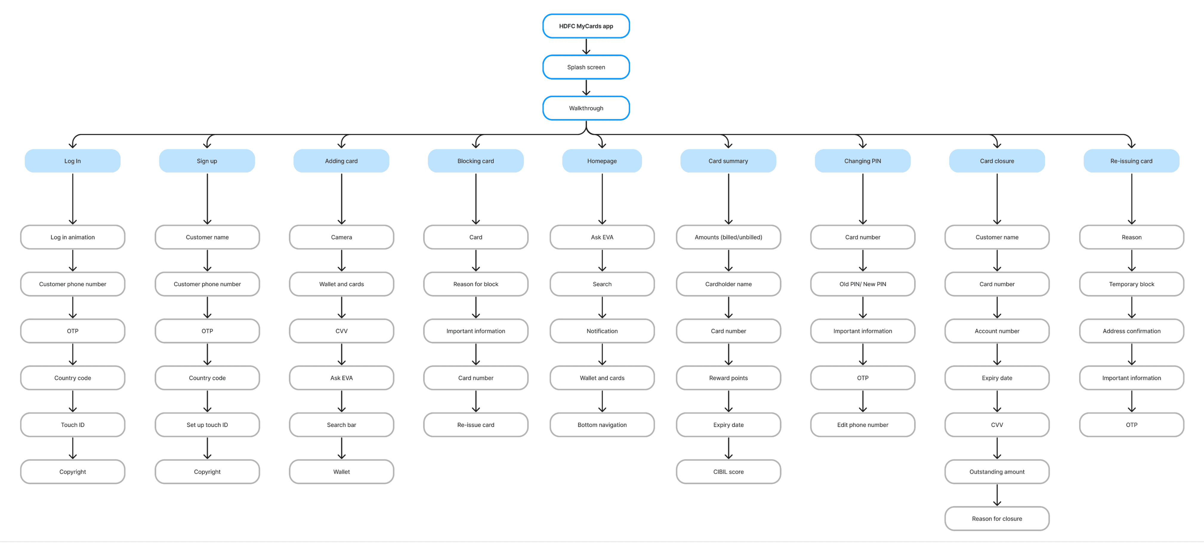 HDFC MyCards was a capstone project completed during a real internship at HDFC Bank. All redesign decisions were developed within actual brand and product constraints. Research was conducted with real users.